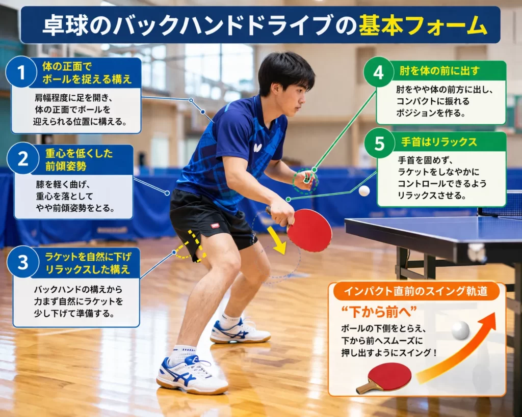 🟦 バックハンドドライブの基本フォーム|5つのポイント(完成版)